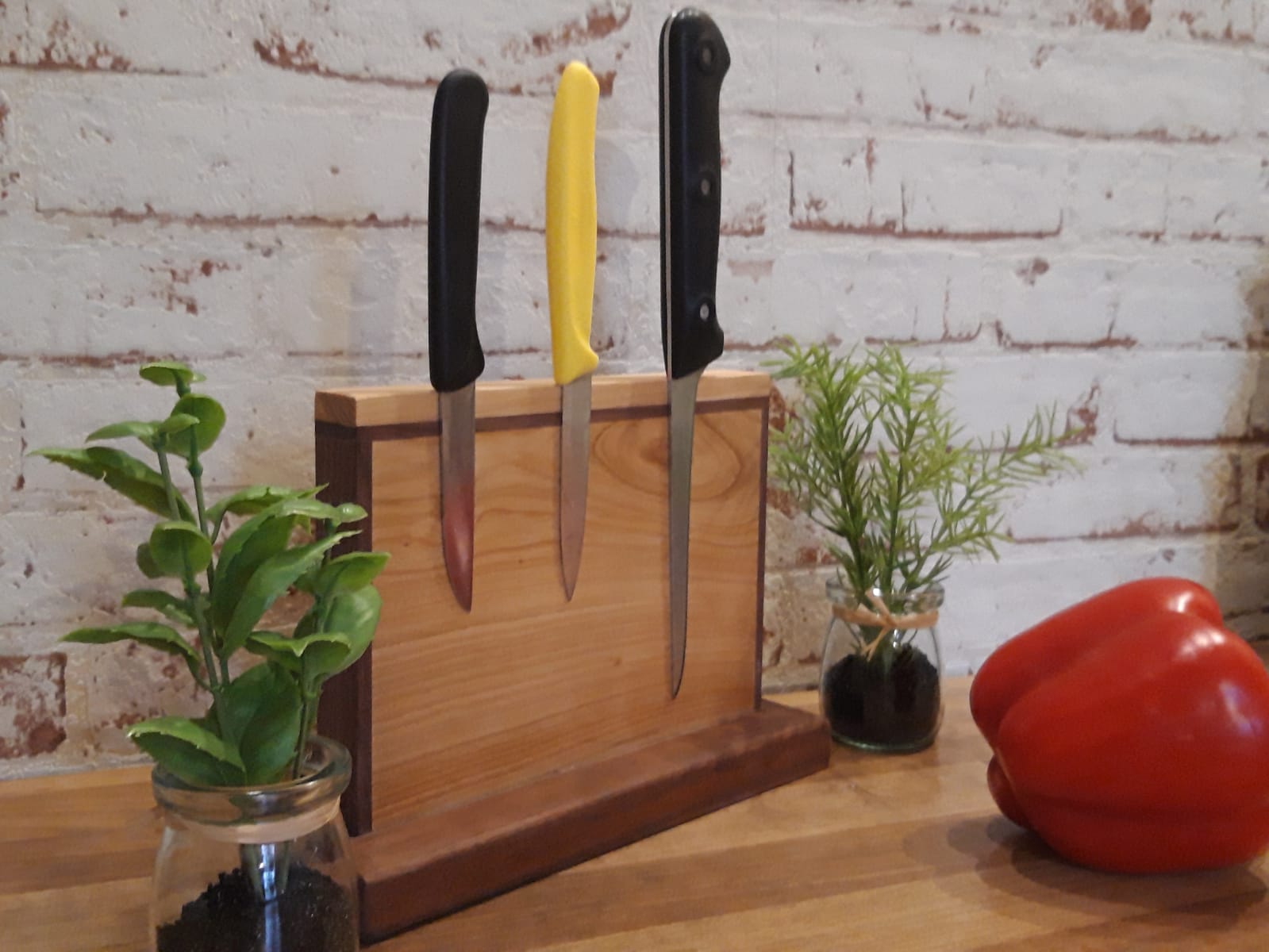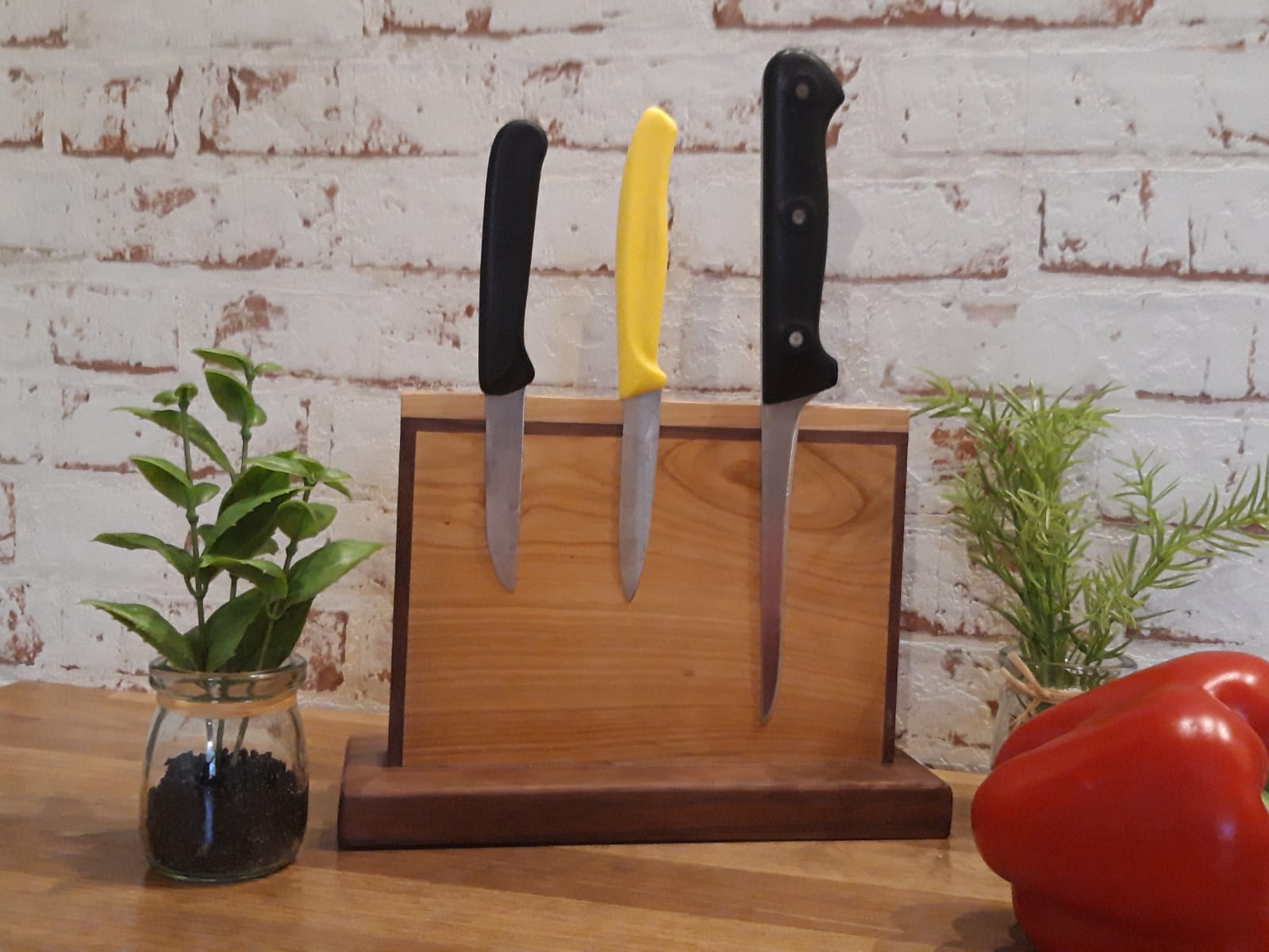 Magnetischer Messerblock aus europäischer Kirsche und amerikanischer Walnuss