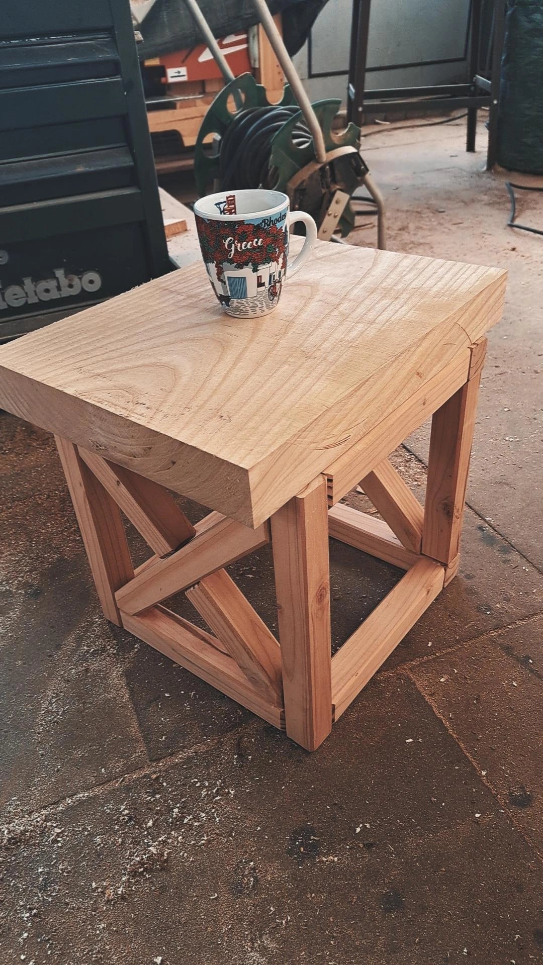 Ein multifunktionaler Würfel aus Douglasie, als optisches Stilelement, Halter für den schönsten Blumentopf oder mit Deckel als Beistelltisch oder Fußhocker. Wo auch immer ihr diesen Würfel bei euch seht, ihr könnt ihn dafür nutzen.
