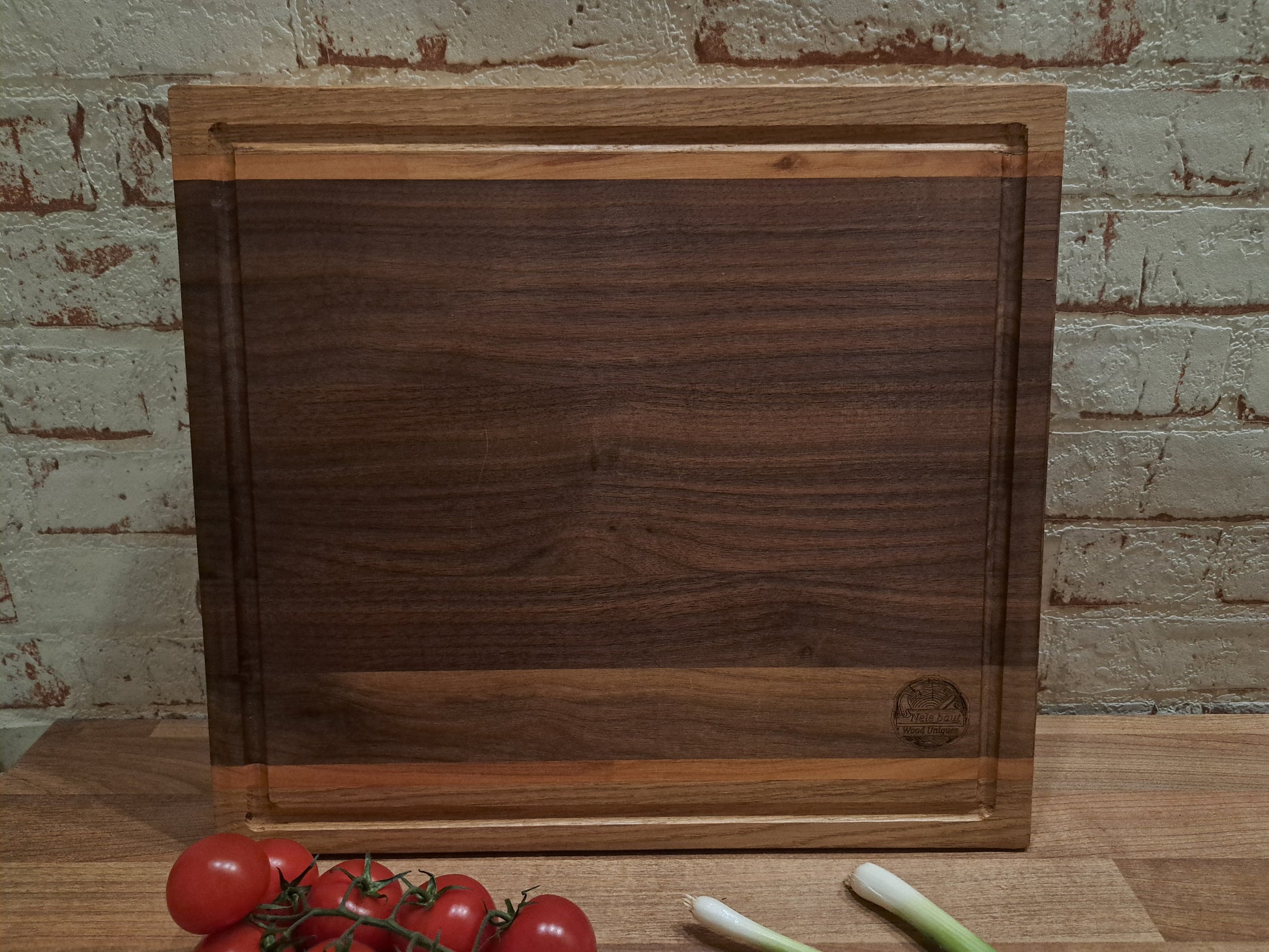 Schneidebrett aus Walnuss, Eiche und Kirsche mit Schweizer Kante