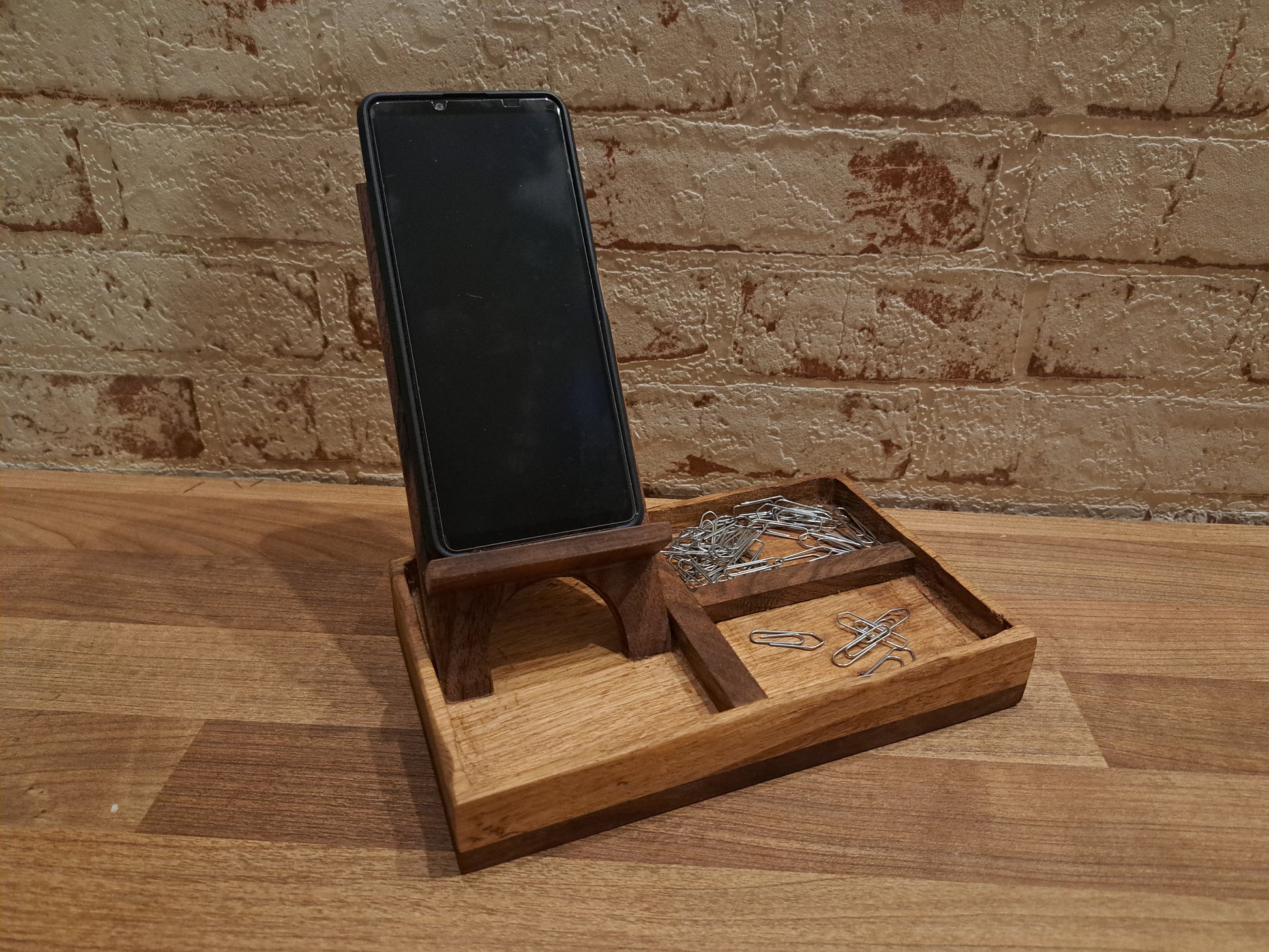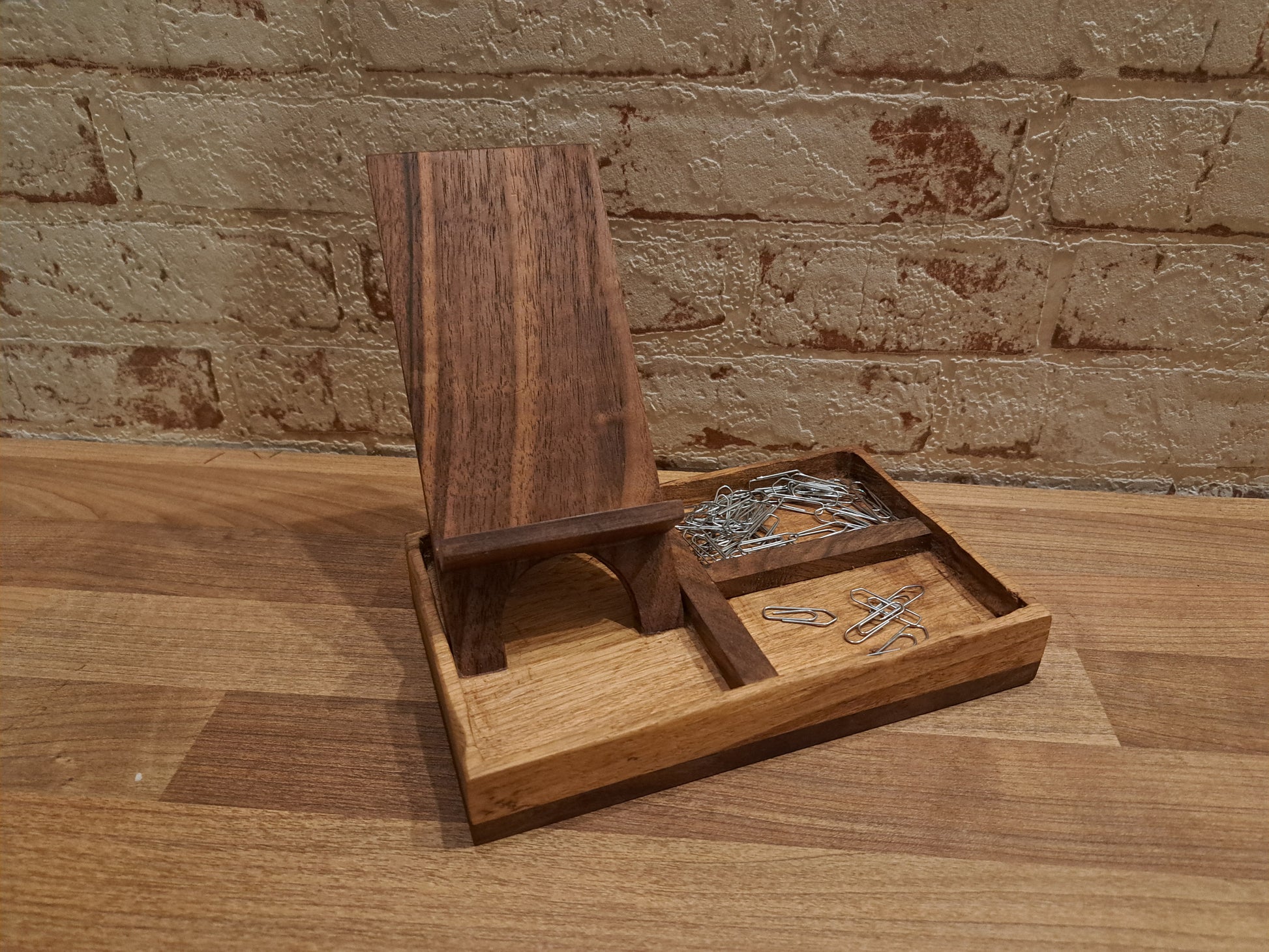 Ein Schreibtisch Organisierer aus Heimischer Eiche und amerikanischer Blacknut Schwarznuss.